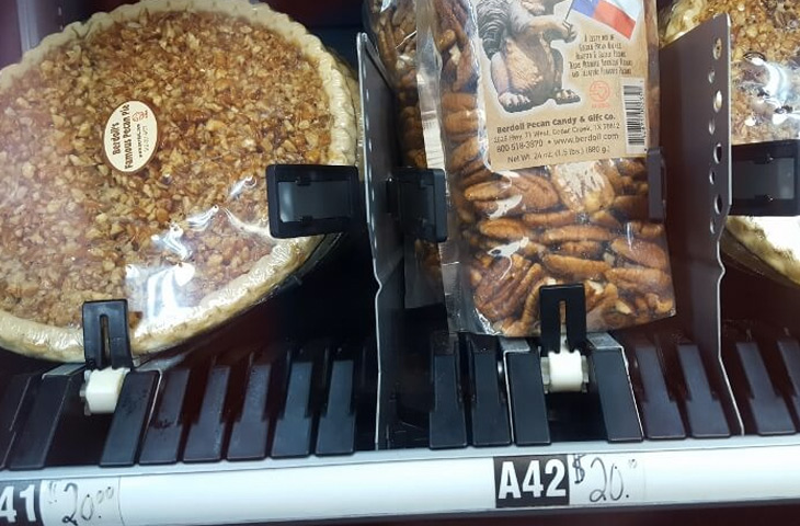 В Америке выпечку с орехом пекан любят настолько, что производители этой продукции решили сделать тематический автомат. По аналогии с концепцией «автоматической» мясной лавки подобные аппараты устанавливают рядом с магазином с домашней выпечкой, чтобы даже после закрытия любой желающий мог приобрести пироги с пеканом.