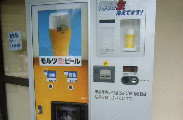 В Стране восходящего солнца пропустить кружечку разливного пива можно не только в баре. Если вечером пятницы любимое питейной заведение вдруг окажется забитым по завязку, за бокалом пива можно отправиться к вендинг-автомату. Пиво обычно представлено одним-двумя сортами, поэтому особо выбирать не приходится, зато оно всегда холодное.