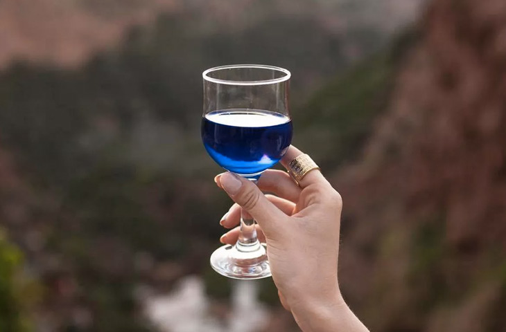 Свой необычный цвет вино получило за счет смешивания красного и белого сортов винограда с двумя органическими пигментами: антоцианином, из кожицы красного винограда, и индиготином, натуральным красящим веществом, обычно используемым в качестве пищевого красителя.