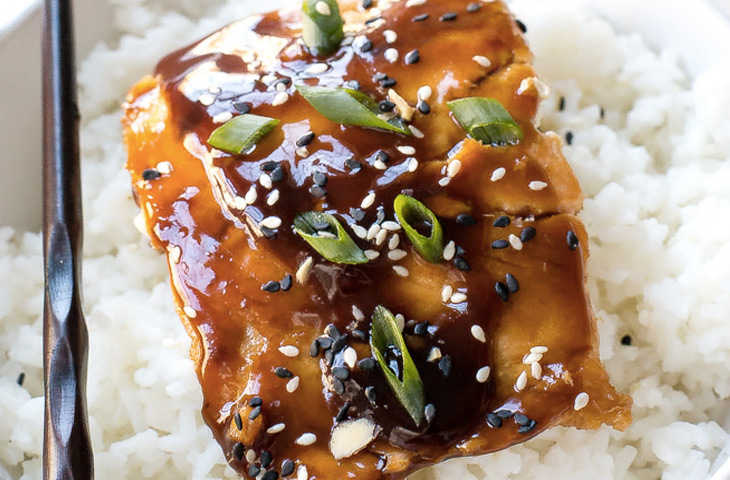 Нагреть одну чашку растительного масла в сковороде на среднем огне, выложить оставшуюся курицу и обжарить так же, как первую партию. Подавать курицу с рисом и соусом.