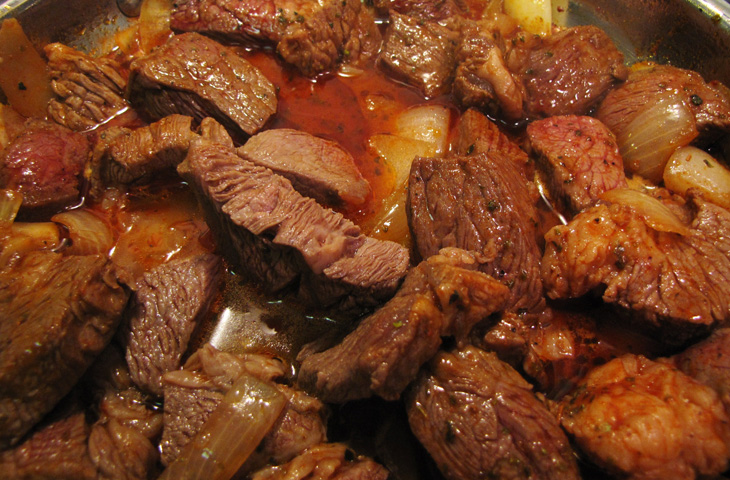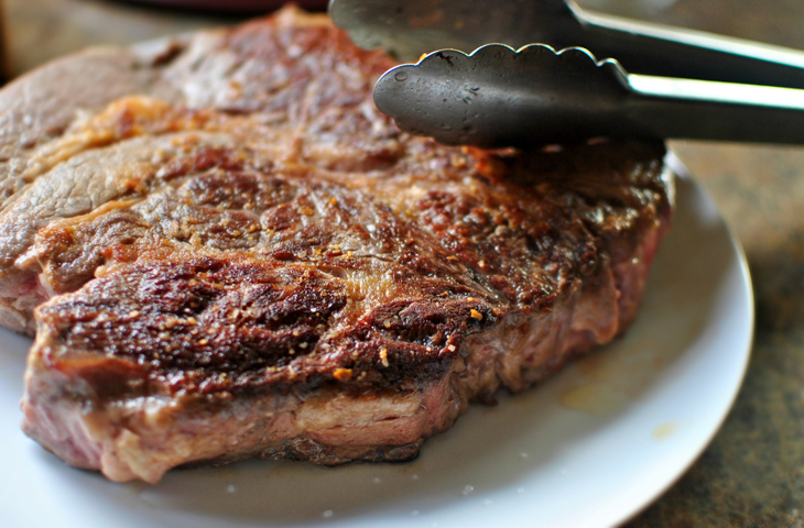 Такой способ подойдет для приготовления нетолстых кусков мяса. В качестве нагреваемой поверхности тут выступает поверхность сковороды, которая может быть как с ровным дном, так и со специальными ребрами — такие используют для приготовления стейков в стейк-хаусах. Для этого куски предварительно обжаривают на сковороде и и после доводят в духовом шкафу. Жарка на сковороде — это наиболее быстрый и отлично подходящий для нетолстых и нежных кусков говядины способ приготовления. Рекомендуем использовать гриль-сковороду или же оперативно удалять излишки соков и жира при приготовлении на обычной сковороде.