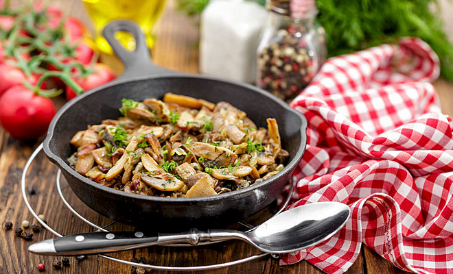 Грибы вымыть и тщательно обсушить. Оставить маленькие грибы целиком, крупные нарезать.