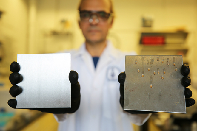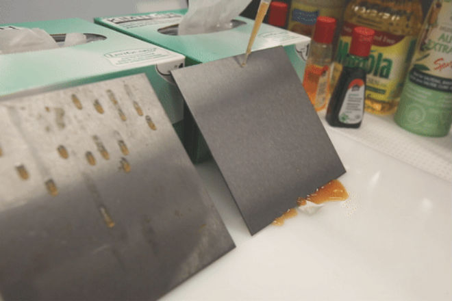 Их команда предложила простое новое решение: нанесение тонкого слоя растительного масла на металлическую поверхность, чтобы заполнить микроскопические царапины, трещины и трещины и создать барьер для закрепления бактерий.