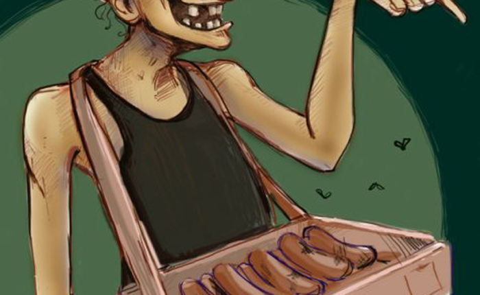 Автор: Терри ПратчеттЭтот уличный ростовщик встречался главному герою по всей территории Плоского мира. Себя-Режу-Без-Ножа Достабль продавал обычно самую дрянную еду, которая пользовалась неизменным спросом. Чаще всего на его прилавке можно было встретить сосиски в тесте.
