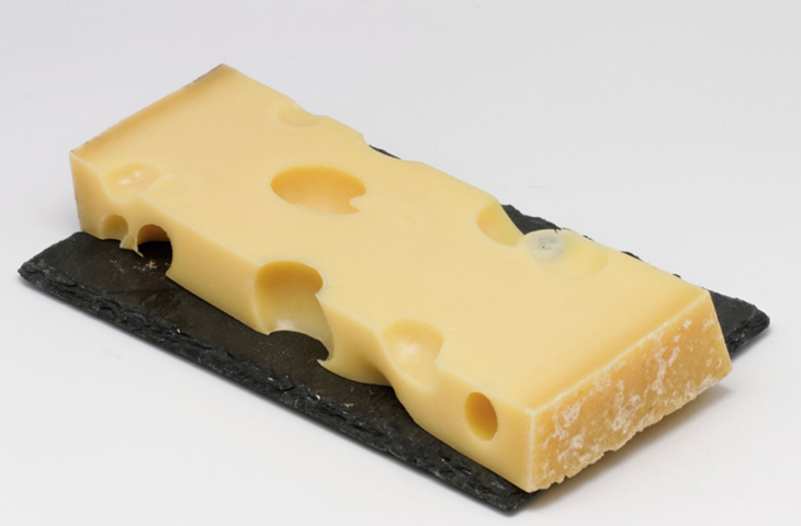 Эту визитную карточку швейцарской кухни легко можно узнать по красивым отверстиям, напоминающим мышиные ходы. Сыр из коровьего молока обладает характерным сладковатым, фруктовым вкусом, который вписывается и в классический бутерброд, и отлично дополняет бокал вина.