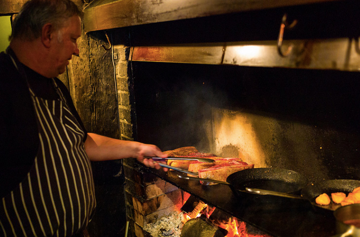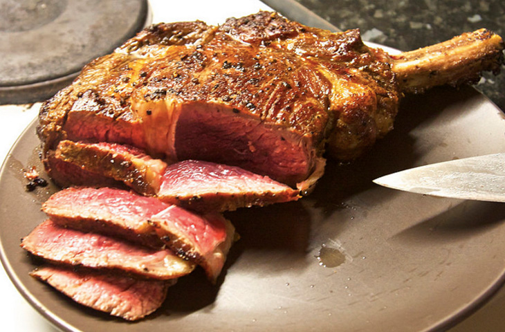 Всякое, конечно, бывает. Случается и такое, что приходится неприлично долго наслаждаться вином просто потому, что про заказ бессовестно забыли. Но это скорее исключение, чем правило. В приличных стейк-хаусах обычно надо лишь немного подождать. У повара, знаете ли, не припрятана в закромах скатерть-самобранка (читайте, микроволновка и полуфабрикаты), и чтобы вкусно пожарить стейк с учетом заказанной внутренней температуры, а потом дать мясу отдохнуть, как ни крути, нужно время. Разогреть сковороду, смазать мясо маслом, посолить, поперчить — в общем, все как и положено. К тому же вы не единственный посетитель стейк-хауса, так что наберитесь терпения и немного подождите, особенно в тех случаях, когда вы заказали отруб весом полкило и больше.