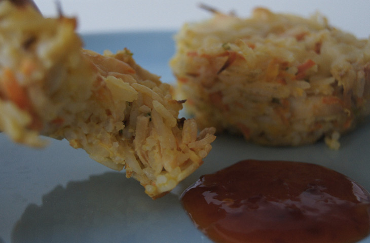 Попробуйте пожарить на гриле рис. Возьмите остатки приготовленного риса и сделайте из него подобие котлет, пока рис еще теплый. Остудите их, а затем уберите в морозильную камеру или холодильник до использования. Зажгите гриль, сбрызните рисовые котлеты небольшим количеством масла и положите их прямо на решетку. Рис на гриле станет отличным дополнением к мясу или овощам.