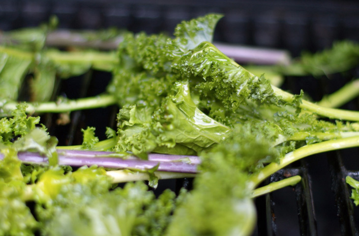 Положите жареную кале в ваш овощной тако. Это добавит баланс текстуры и вкуса, да еще и сделает блюдо полезнее. Мне нравится окунать ее перед жаркой в простую заправку из шампанского уксуса, лимонного сока и оливкового масла и обжаривать на по-настоящему раскаленном гриле. После жарки не забудьте обрезать стебли.