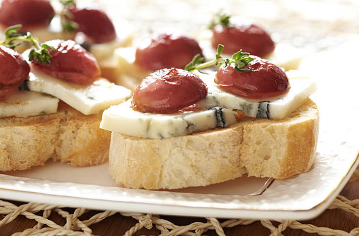 В моем ресторане мы делаем так: погружаем виноград в простой маринад из оливкового масла, бальзамического уксуса, нарезанного чеснока и чили, а затем обжариваем на гриле примерно одну минуту. После этого виноград выкладывается обратно в миску с маринадом и оставляется в ней остывать. Подается виноград со свежей бурратой и жареным хлебом.