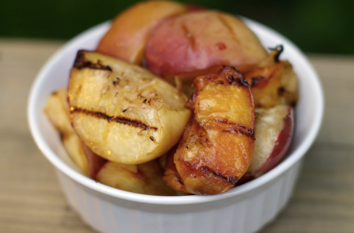На гриле мы готовим фруктовые соусы для барбекю. Я обжариваю персики, пока они не карамелизуются, а затем тушу их на медленном огне с халапеньо и другими специями. Получается отличный соус, который я использую для маринования или смазывания в процессе жарки морепродуктов, птицы, баранины или просто в качестве соуса к блюдам.