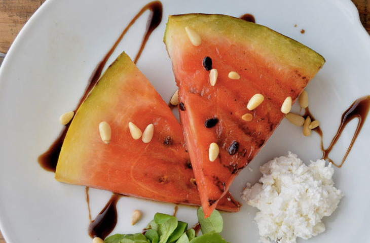 Возьмите любые летние овощи и фрукты, приправьте их солью и перцем, сбрызните хорошим оливковым маслом и положите на гриль. Больше всего мне нравится готовить на огне арбуз с сыром манури. Перед подачей я дополняю его листьями мяты и веточками укропа и приправляю морской солью и оливковым маслом.