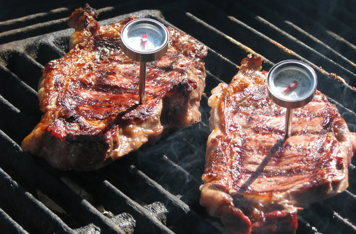 Время приготовления стейка зависит от температуры и способа, которым вы собираетесь его приготовить. Лучшим способом проверить готовность будет использование кухонного электронного термометра. В случае со стейками, термометр следует поместить в горизонтальном положении в центр стейка. В случае с ростбифом термометр нужно расположить в самой толстой его части. Определить готовность мяса при тушении можно, проткнув его вилкой, она войдет в готовый кусок без всякого сопротивления.