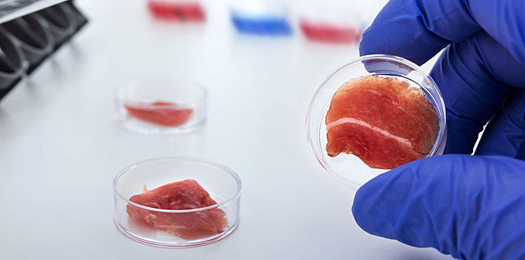 Искусственное мясо удалось вырастить из 4 видов клеток натурального мяса. Пока на создание одного тонкого стейка уходит 2-3 недели.