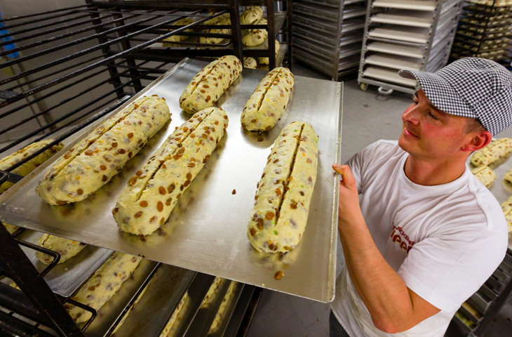 Немцы часто готовят на рождественские праздники фруктовый кекс Штоллен, который запивают традиционным глинтвейном. Наиболее распространенный вид штолленов имеет начинку из изюма и цукатов, хотя популярны также варианты с маком, орехами или марципаном. Разумеется, каждый пекарь имеет свой рецепт-состав приправ и специй, которые придают штолленам разных пекарей немного различный вкус. После выпечки штоллен промазывают растопленным сливочным маслом и посыпают сахарной пудрой. Штоллены выпекаются заранее, иногда за месяц до Рождества, и в прохладном месте могут храниться два-три месяца.