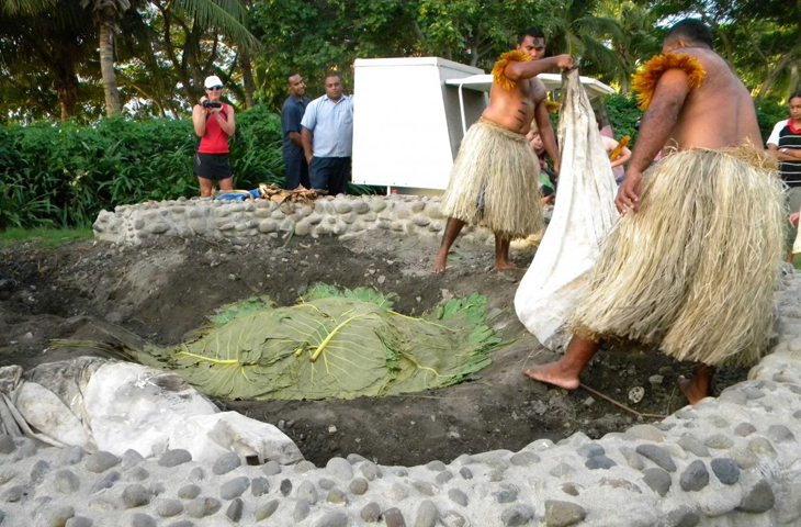 На Фиджи местные жители в Рождество ужинают рыбой, запеченной в банановых листьях и свининой из земляной печи. Впрочем, все блюда на Фиджи традиционно готовятся в земляной печи, в том числе и сладкие лепешки, которые там запекают на больших камнях.