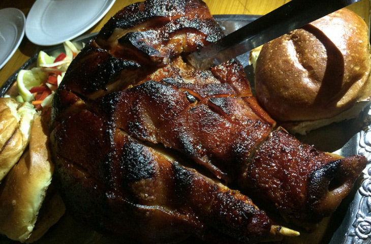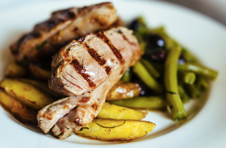 Не люблю говяжью вырезку — вкуса мало, а стоит дорого. В качеств альтернативы я рекомендую хэнгер стейк, он гораздо вкуснее. Мало кто также берет свиную голову, а если и берет, то фантазия не уходит дальше терринов. Я же готовлю ее совсем иначе и нарезаю тонкими ломтиками.