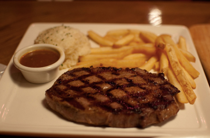 Филе не участвует в движении, поэтому кусок получается нежным, но при этом не имеет вкуса. Совсем другое дело рамп стейк. Он и стоит дешевле, и концентрированным мясным вкусом не обделен. Лучше всего его готовить на гриле — с солью и розмарином.