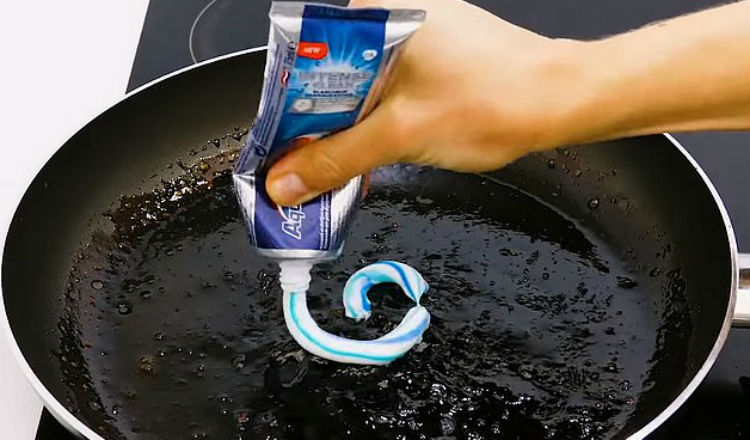Со временем на сковороде собирается такой нагар, что ни посудомоечная машина, ни дорогие моющие средства его не берут. Между тем, проблема решается самой обычной зубной пастой.