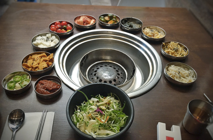 В корейской кухне барбекю занимает особое место. Для местных жителей — это отличный повод собраться всей семьей или с друзьями, вволю пообщаться и заодно вкусно поесть. Главная особенность корейского барбекю заключается в самом процессе. Их гриль совсем не похож на тот, что мы привыкли выставлять на дачной лужайке. Барбекю встроены прямо в стол. Обычно это или компактная жаровня на углях, либо плитка. Само барбекю чем-то напоминает эдакий шведский стол: всевозможные маринованные овощи, разнообразные солености, водоросли, обертка и, разумеется, мясо. Ошибиться с техникой приготовления в корейском барбекю просто невозможно — вы сами определяете ингредиенты и сочетаете их по своему вкусу.