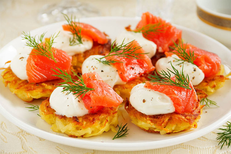 Повара с именем имеют свои собственные рецепты из привычных нам ингредиентов. Одно из их блюд – картофельные оладьи, сделанные особым образом. А в качестве финального аккорда используют красную рыбу.