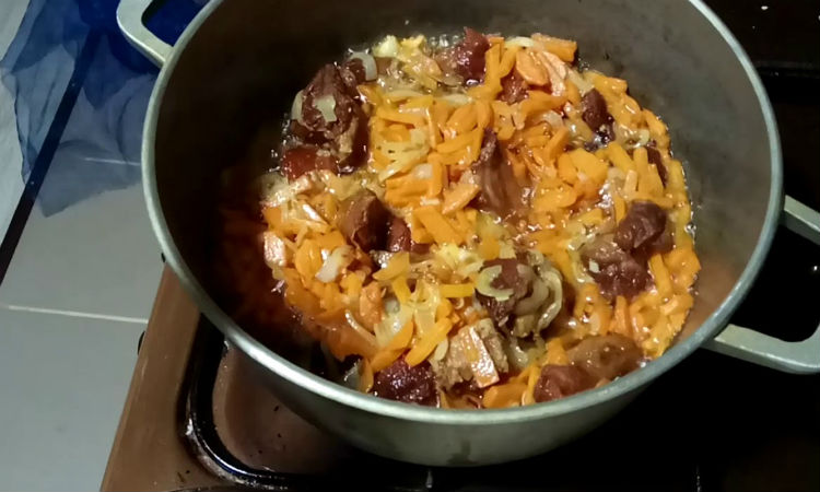 Все начинается с установки казана на место. Сорт риса берется особенный, хорезмский лазер. Кроме того, в ташкентском варианте плова используется горох, изюм и зира, что придает ему особый аромат.