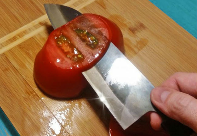 Проблему вечно тупящихся кухонных ножей оказалось решить довольно просто. Мастер показал старый проверенный секрет: заточку лезвия против шерсти.