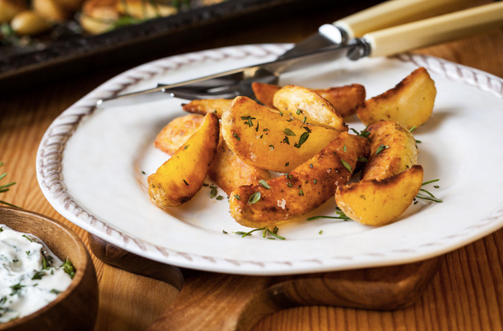 Запеченый картофель с хрустящей корочкой – идеальный гарнир по любому случаю. Особая его прелесть в том, что внутри он очень нежный и сочный. Получается невероятное сочетание, которое мы так любим. Но чтобы приготовить картофель идеально, надо знать несколько поварских тонккостей. Самая главная – надо различать сорта картошки. В ней может быть как много, так и мало крахмала. Тот, что содержит мало – как раз наш вариант для идеального запекания. Проверить на крахмал очень просто: разрезаем клубень пополам и трем друг о друга половинки. Если они слиплись, то крахмала много. А если нет – это то, что нам нужно для запекания.