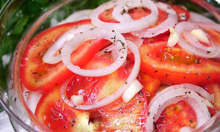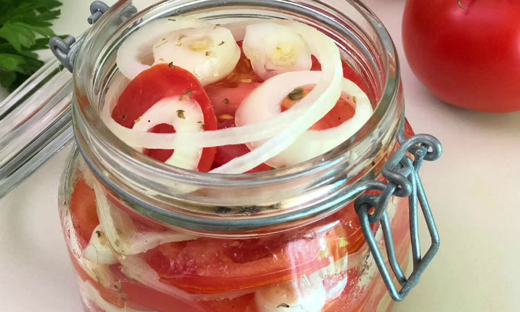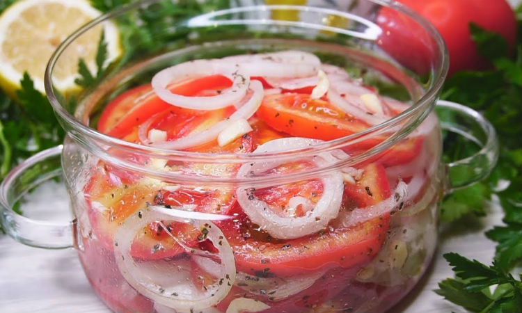 Удивительно вкусная закуска из луков и помидоров выходит в меру соленой, острой и даже пикантной. Да и становится еще лучше со временем!
