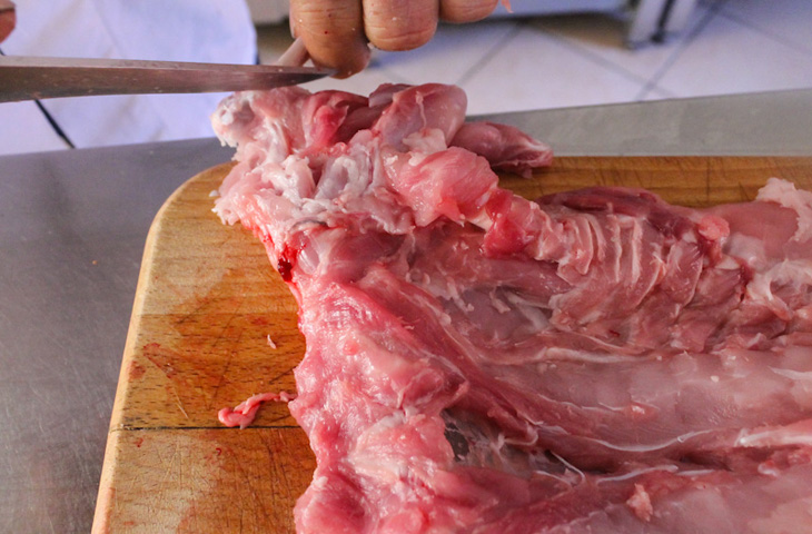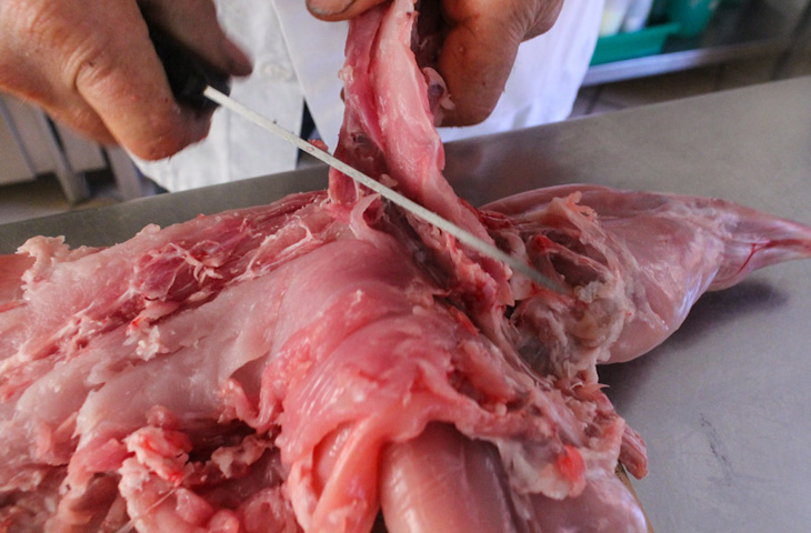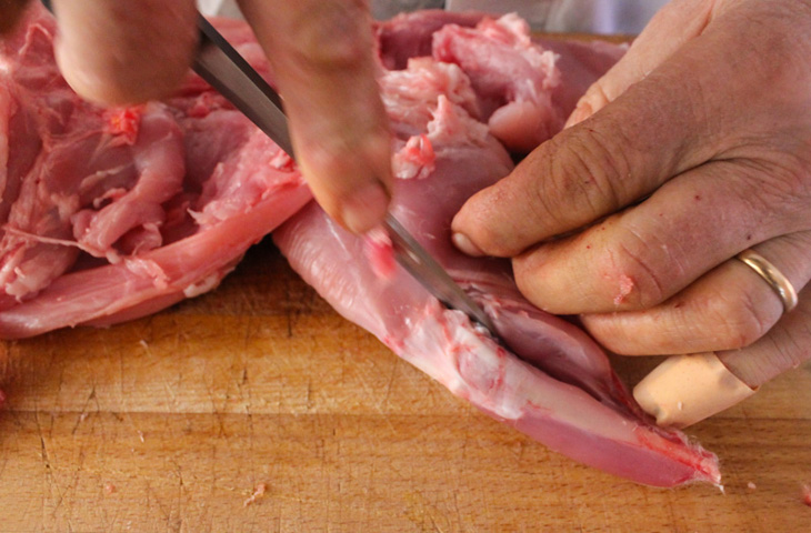Проверяем, не остались ли места, в которых кости еще не отделены от мяса.