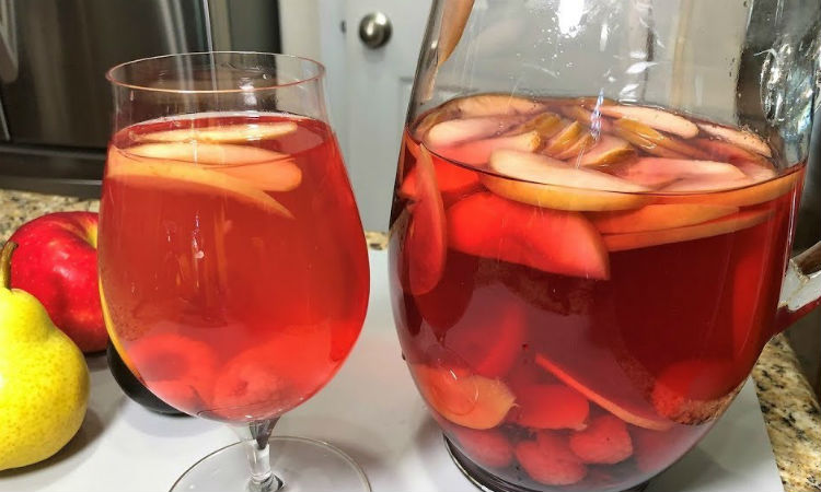 Фрукты нарезаются достаточно тонкими, небольшими кусочками. Закладываем все фрукты в кувшин со стеклянными стенками и заливаем кипятком.