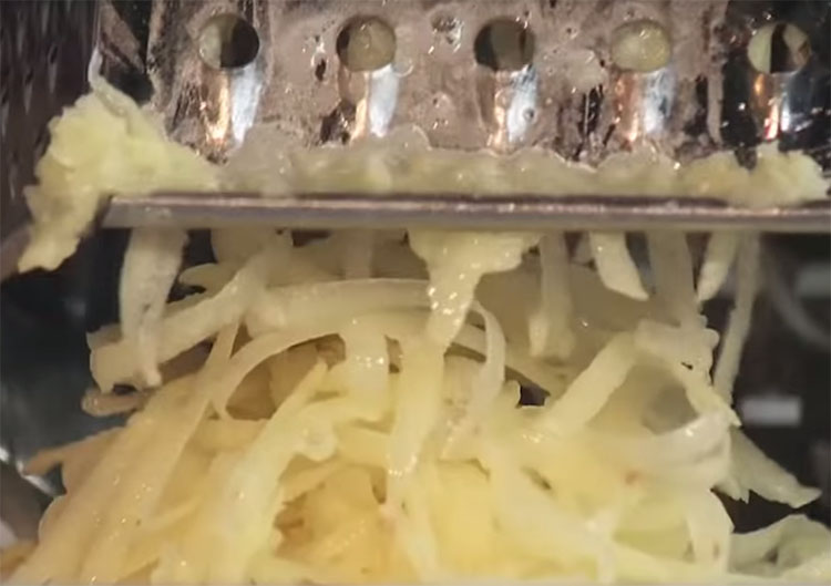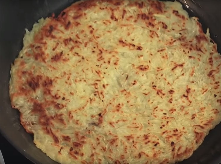 Способ приготовления его обычный – натираем картофель, добавляем яиц и муки, все хорошенько перемешиваем и жарим на сковороде.