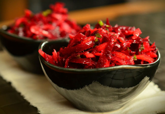 Изумительный салат на зиму получается таким ароматным из-за сочетания довольно необычных ингредиентов. В одну банку перемешаем свеклу с чесноком и кабачками, выйдет вкуснее соленых огурцов.