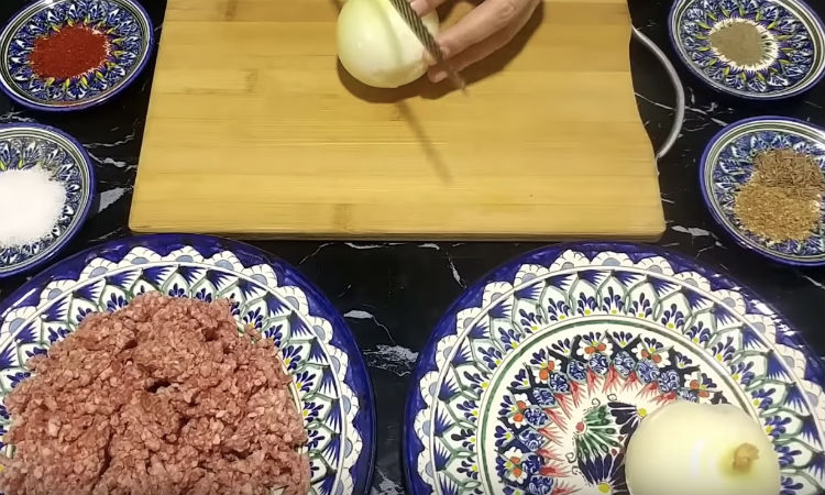 Для начинки возьмем пару луковиц, фарша любого граммов 400. Соль и специи (в классическом рецепте это кориандр, паприка, черный молотый перец и зира), отваренный до полуготовности рис. Тесто же будем делать почти обычное: вода, мука, соль, яйцо. Тесто вымешиваем, накрываем крышкой и оставляем минут на 10-15.