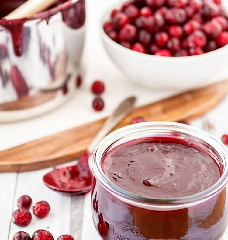 4. Для приготовления соуса необходимо разогреть бруснику, красное вино и сахар в равных пропорциях. Далее добавить корицу и розмарин. Всю смесь вылить в блендер и взбить до однородной консистенции.