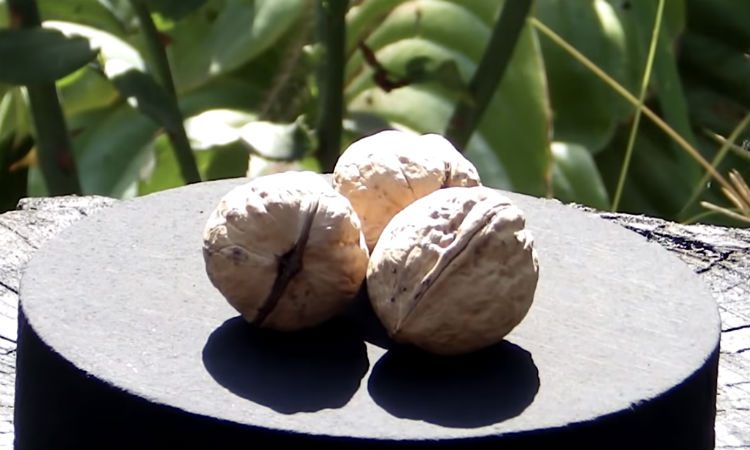 Удар не повреждает «бабочку». В результате выход готового продукта получается большим — при такой чистке ни кусочка ореха не теряется.