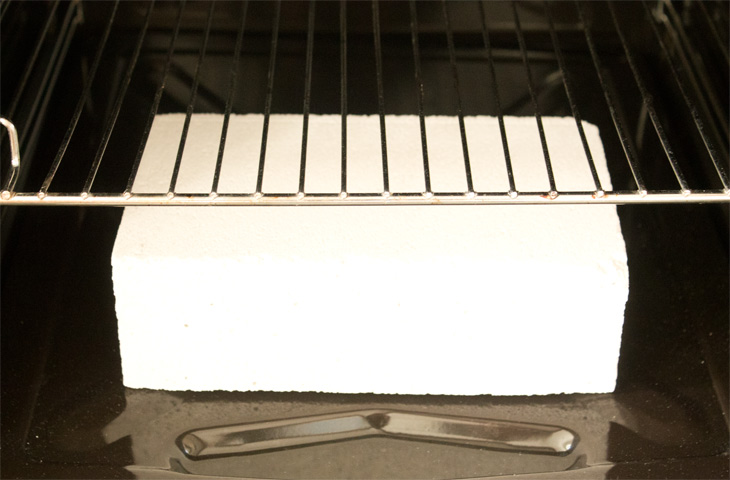 Огнеупорный кирпич, поддон с водой или песком еще лет 20 назад были обязательными атрибутами многих духовок. Эти нехитрые приспособления помещали в духовку для того, чтобы блюдо не подгорало, покрывалось корочкой, не пересыхало, одним словом — для контроля за процессом выпечки. Кроме того, при открытии дверцы температура в духовке падает и восстанавливается не сразу. Если в духовку положить кирпич или камень, падение температуры при открытии дверцы будет меньше, а блюдо приготовится быстрее. Так что подобный «аксессуар» не будет лишним даже в современной модели, если духовка достаточно капризная. Кладут кирпич на решетку, установленную на самом нижнем уровне.