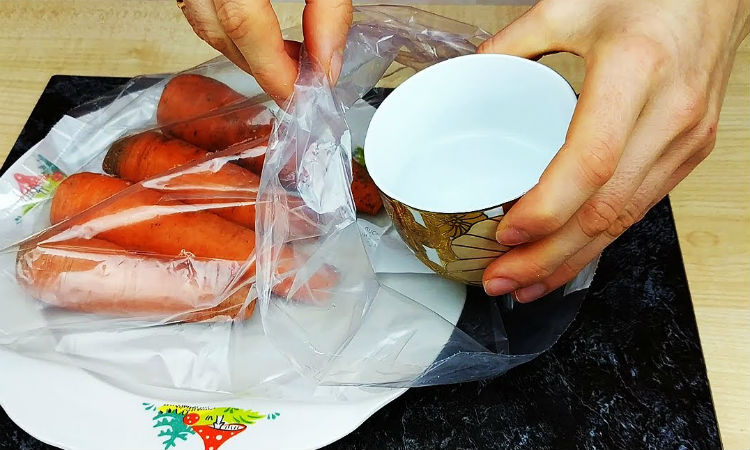 И теперь на 5 минут просто ставим в микроволновку на 800 ватт. Вот и все, морковь готова.