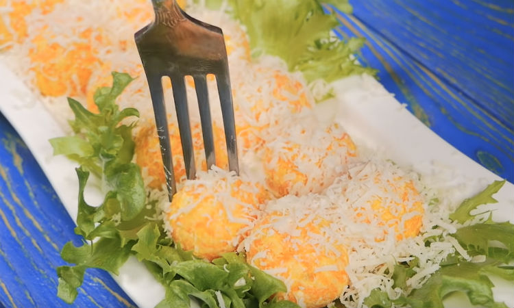 Закуска из моркови с сыром наверняка придется по вкусу многим гурманам. На порцию нужно 90 граммов моркови, сыра твердого 40 граммов, творога столько же. Разбавим вкус чесноком и сверху натрем чуть пармезана.