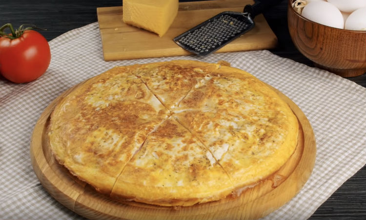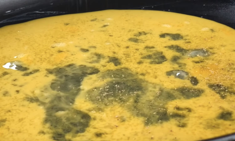 Яйцо взобьем и выльем на смазанную сливочным маслом сковороду. Лаваш сначала быстро обмакнем в воду и положим на сковороду.