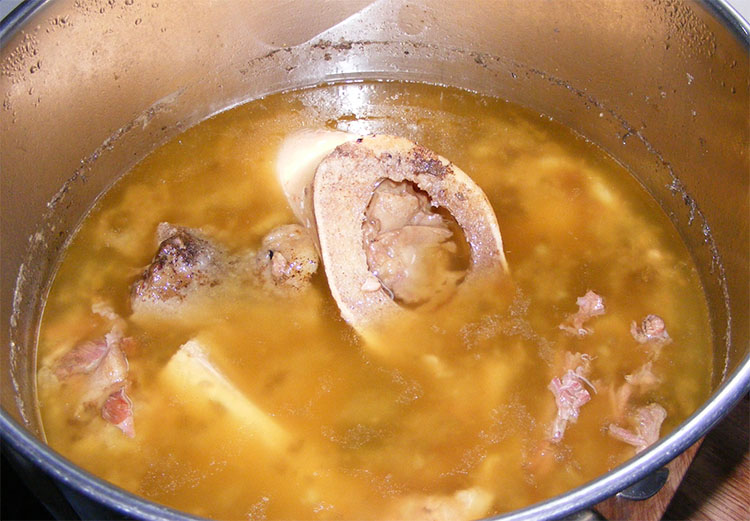 1. Отварить бульон на говяжьей кости: 4 часа в 3 литрах воды.