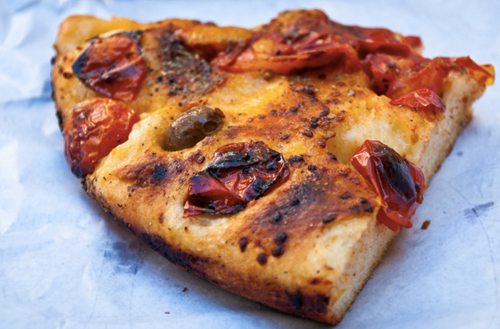 За 1,5-2 часа до выпечки достать тесто из холодильника и дать ему дойти до комнатной температуры. Застелить два противня пергаментной бумагой или щедро их смазать оливковым маслом. Аккуратно разделить тесто на две части и разместить их на подготовленных листах. Дать постоять 10 минут, затем смочить руки и сформировать небольшой круг. Дать ему немного подняться, а тем временем разогреть духовку до 250 °C.