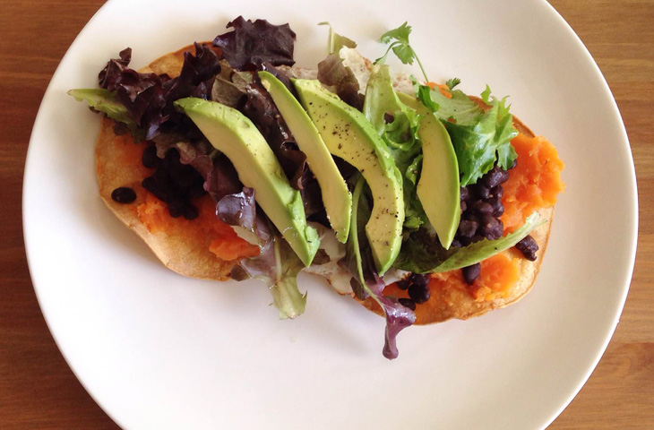 Тостады с черными бобами и авокадо