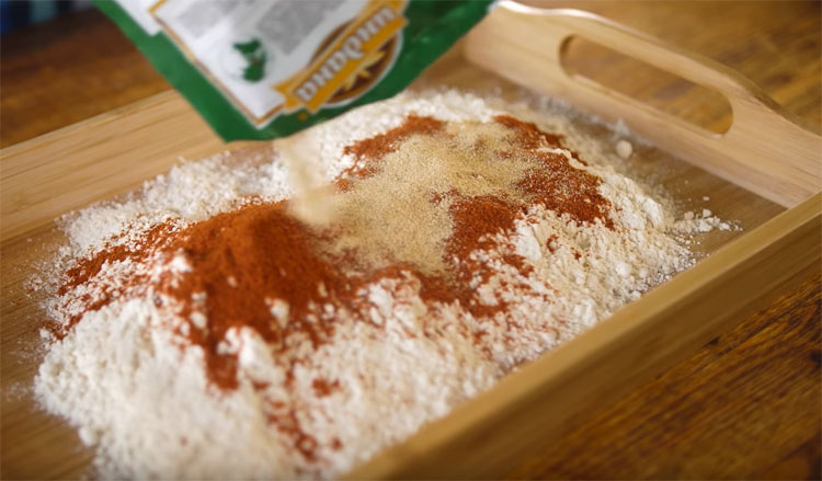 Основное же дело сделает панировка – ее мы делаем из смеси муки, паприки и специй.