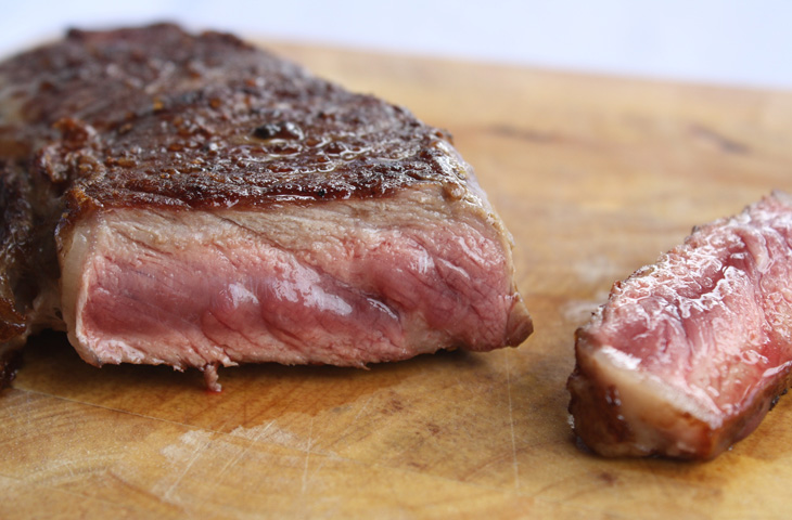 Доведение мяса до полной прожарки грозит испраением всего сока при температуре стейка около 60 °С.