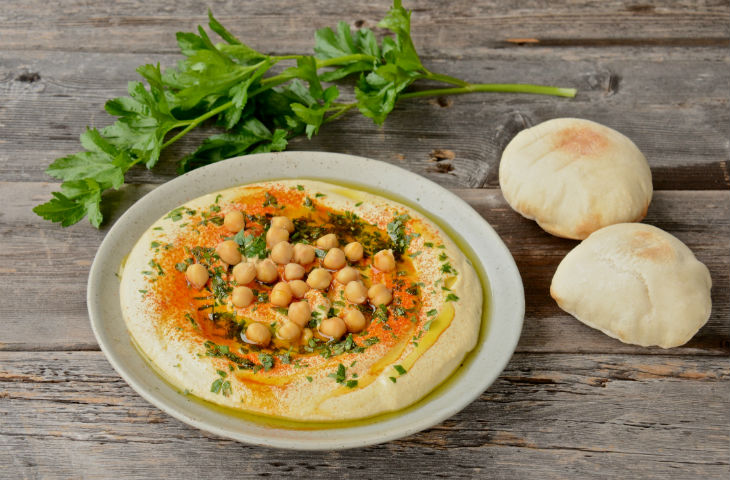 Поместите нут в большую кастрюлю с толстыми стенками, залейте водой и добавьте пищевую соду. Накройте крышкой и дайте впитаться в течение 8 часов. Слейте воду и промойте горох, затем добавьте 1 чашку свежей воды и 3 очищенных зубчика чеснока. Накрыть крышкой и варить на слабом огне до готовности, примерно полтора часа.Слейте воду с гороха, добавьте остальные зубчики чеснока и положите в кухонный комбайн. Добавить 2 столовые ложки лимонного сока и смешать до однородной массы. Добавить большую часть тахини и достаточно варочной жидкости, чтобы создать очень вязкое пюре. Добавить соль, перец, лимонный сок и дополнительные тахини, по вкусу. Подавать с лавашом.