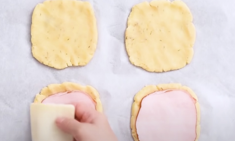 Формируем из картошки квадратную основу, кладем в центр начинку из ветчины и сыра. Закрываем сверху еще слоем картошки, придаем квадратную форму и жарим на сковороде по 5 минут с каждой стороны.