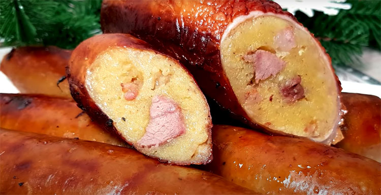 Мы используем натуральную оболочку – с ней получается гораздо вкуснее, чем если запечь колбасу в рукаве для запекания. Оболочка дает дополнительный сок.