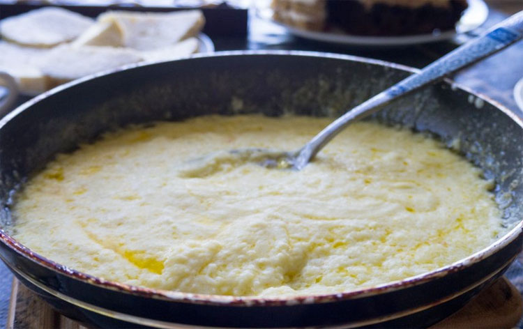 Другие ингредиенты тоже просты – 120 грамм сливочного масла, чайная ложка соды, два взбитых яйца и соль. Сама готовка происходит на сковороде, сначала на ней топим масло, после чего добавляем творог.
