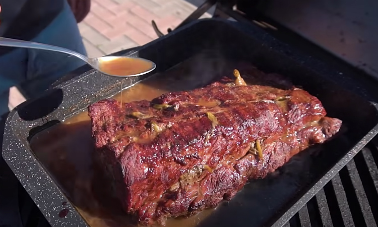 Сочный, но привычный уже шашлык заменим еще более вкусным рецептом — на мангале приготовим мясо одним большим куском. С добавлением специй мясо получится мягким и с хрустящей корочкой.