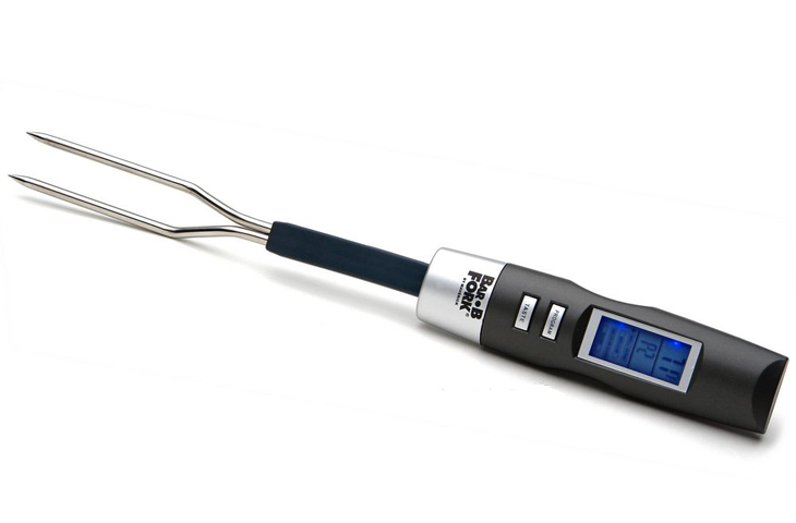 Термометр-вилка. Самый распространенный и точный вид термометра, который замеряет температуру внутри мяса с точностью до градуса и имеет жароустойчивое покрытие.